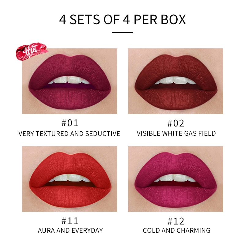 Sexy Type 4pcs Cigarette Shape Lipstick Matte Waterproof Long-Lasting Smoke Tube Lipstick Velvet Red Lip Tint Makeup Cosmetics